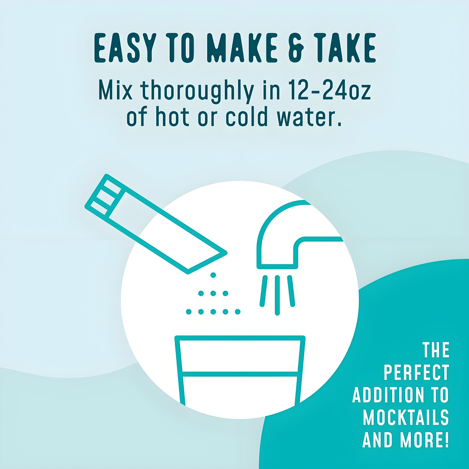 Simply stir this product into 12-20 ounces of cold or hot water. It can also be added to non-alcoholic cocktails.