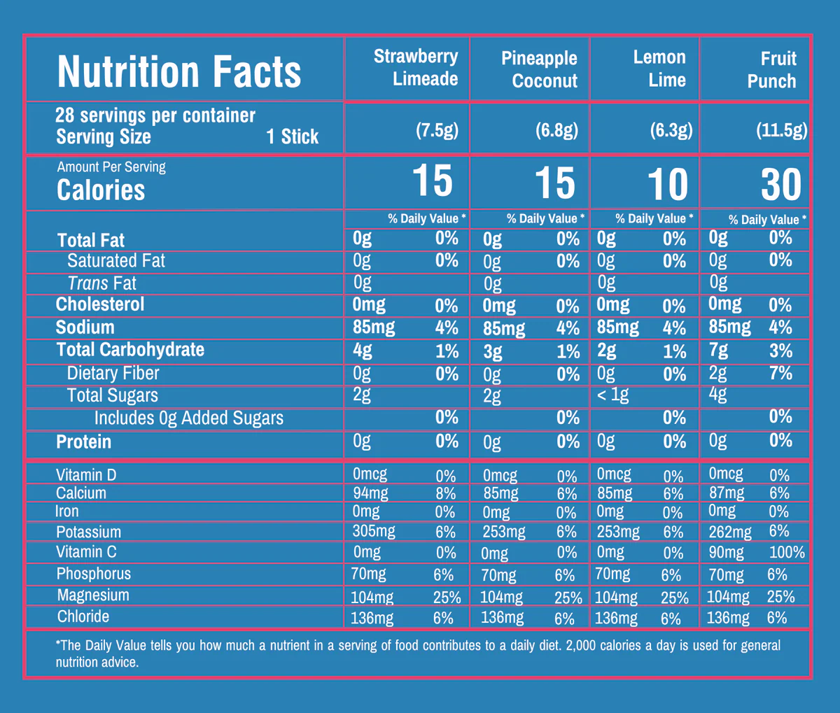 30 calories per serving of Fruit Punch.