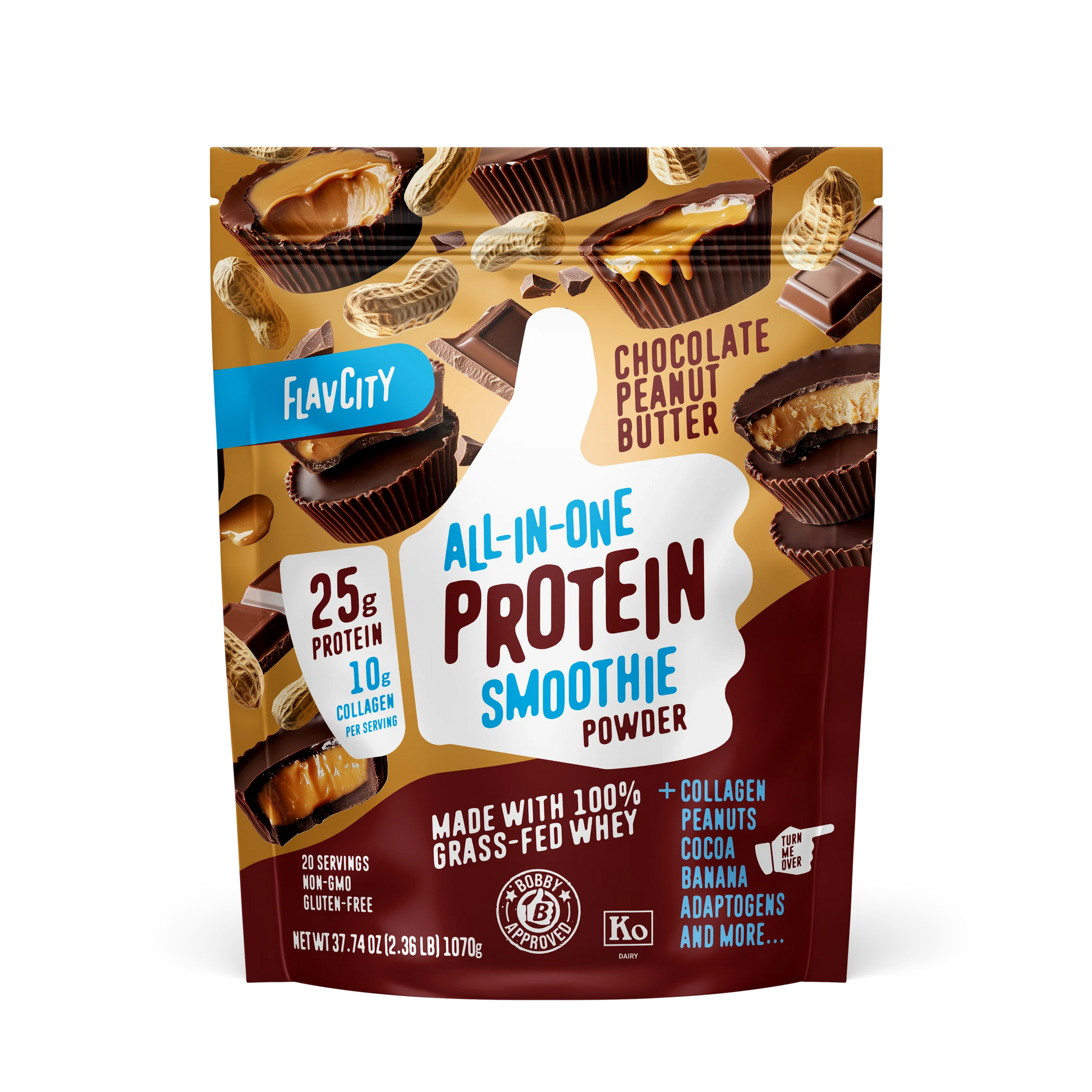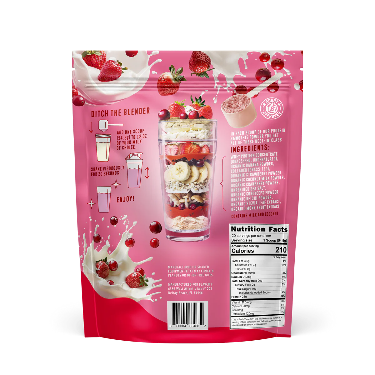 Ditch your blender and try my all-in-one protein smoothie with 25g of protein. Just scoop into your favorite bottle with your milk of choice and shake. We used real vanilla bean powder for this smoothie. The flavor and texture is dreamy & creamy. Instead of stocking your kitchen with protein powder, collagen, fruit, and more—now you can get it all in just one scoop for only $2.99 per smoothie!