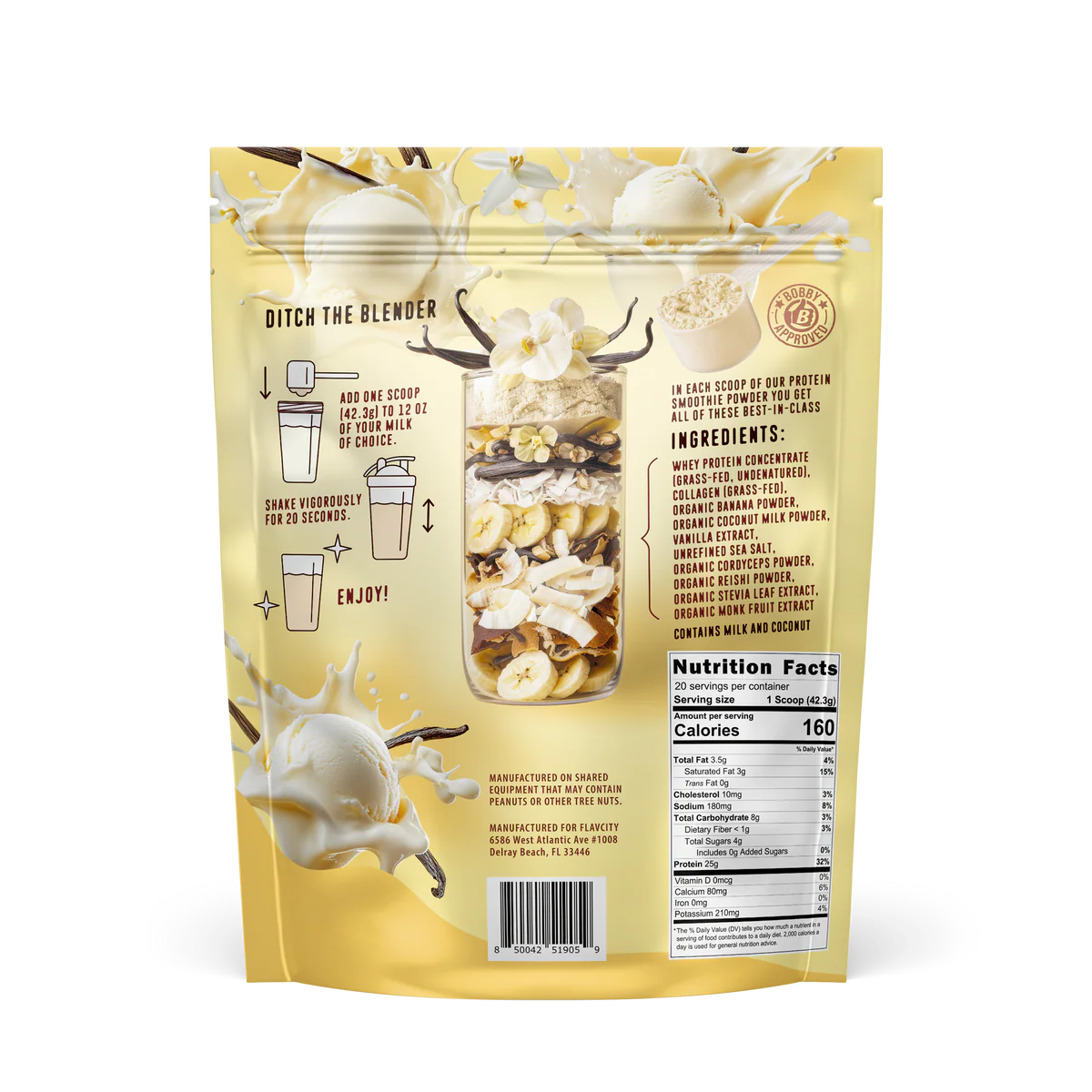 - Ditch the Blender - FlavCity's creamy, nutrient-dense vanilla protein powder simplifies the smoothie-making process. Each scoop combines high-quality ingredients with a mix of vanilla bean and organic coconut milk, so you can simply scoop, shake and sip — no blending or extra add-ins required.
